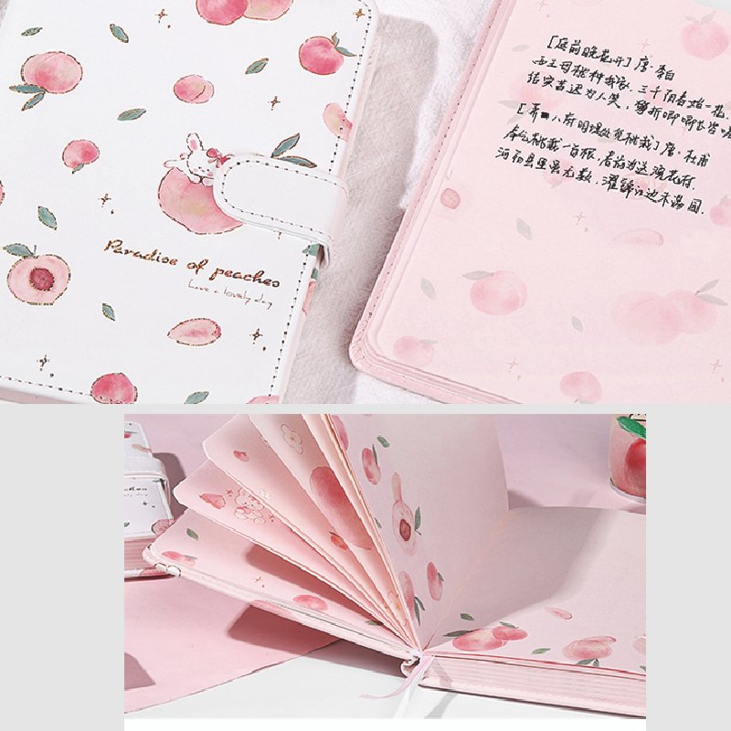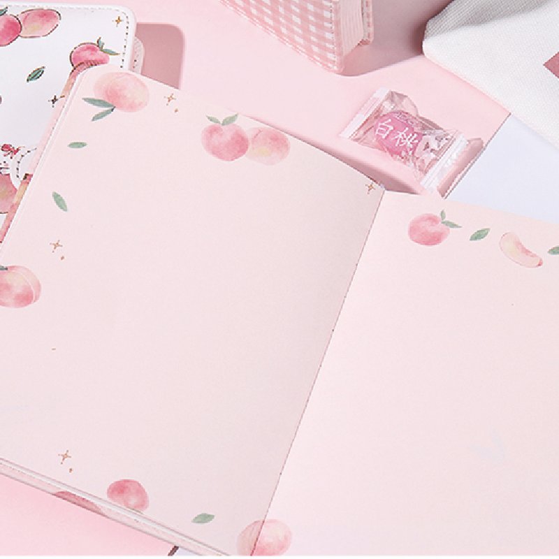 We use foil technique to do the printing. And unlike ordinary foil, we choose quicksand to do the printing. The idea of combine quicksand with foil is rather creative and rare in market. The peach on the cover is shining and sparkling. Even among a big notebook store, this one will stand out.