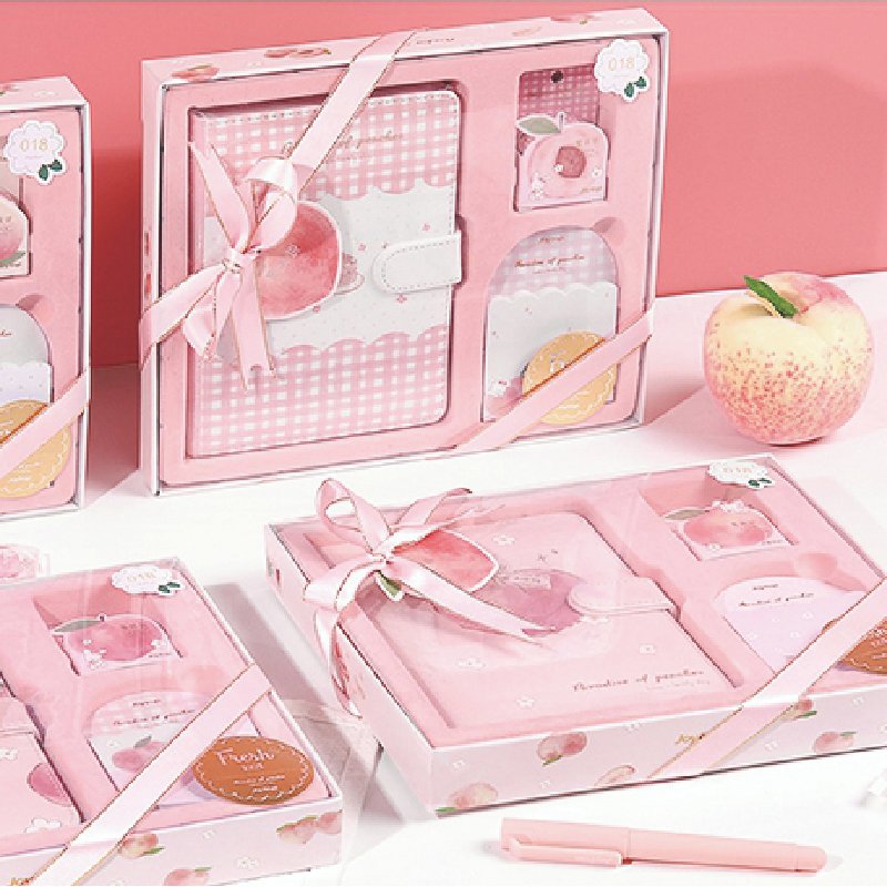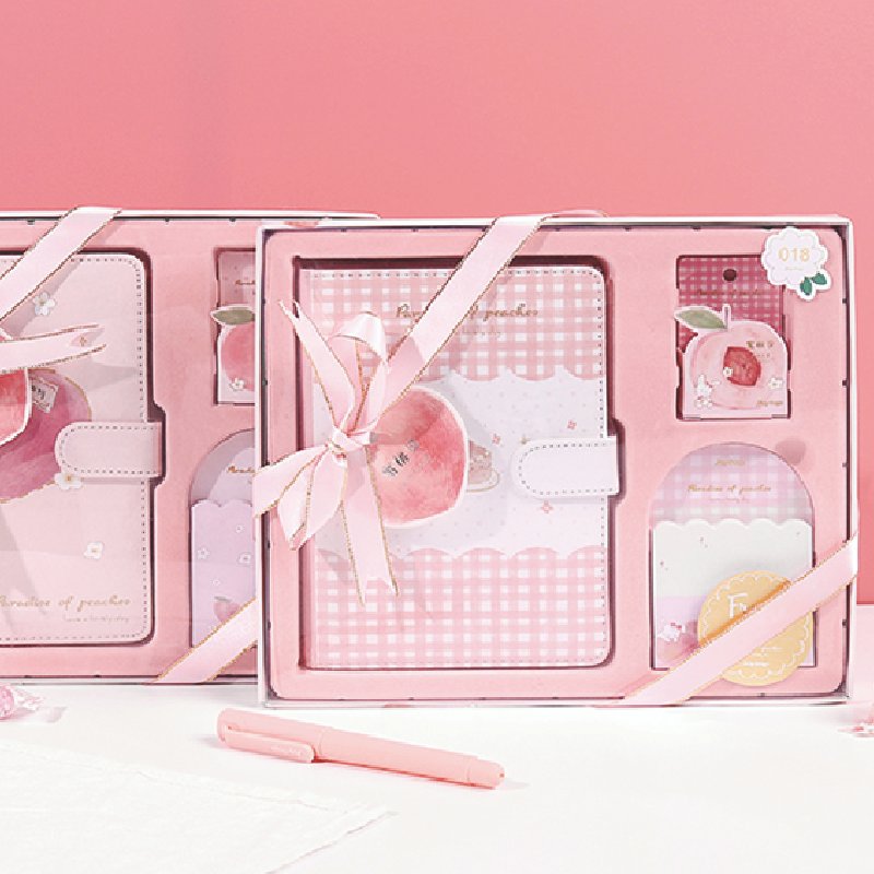 We are professional stationery manufacturer specializing in notebooks, pens, stationery set. This cute stationery we use pink as main color, 4 different design for you to choose.